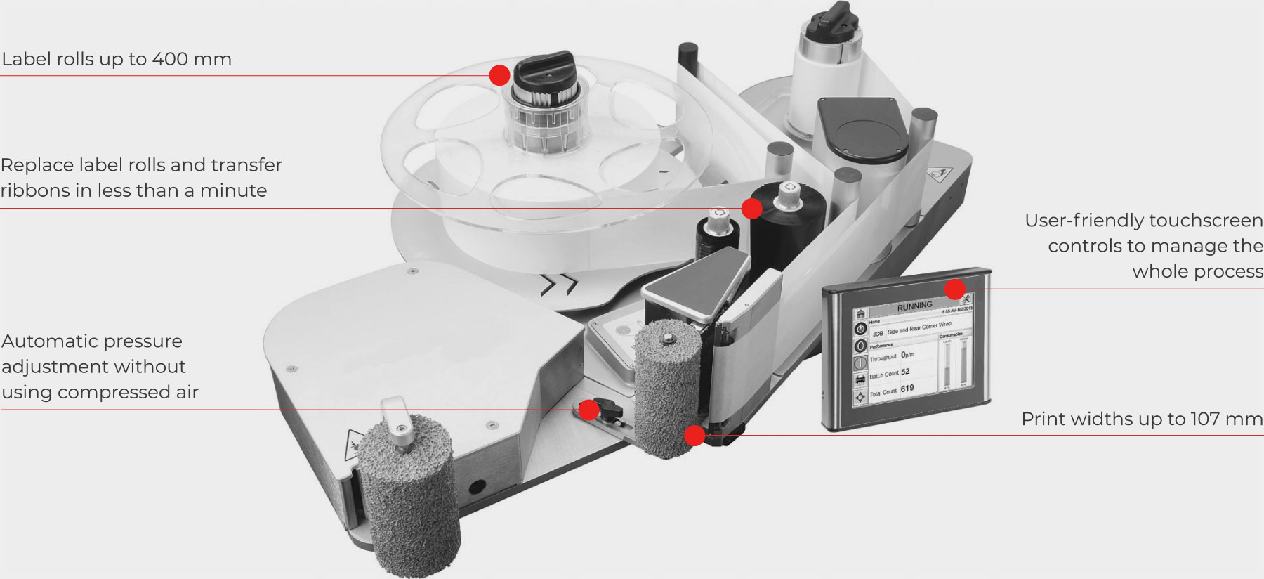 It can apply up to 48 labels a minute and is available in three print-width versions: 53 mm, 76 mm and 107 mm.