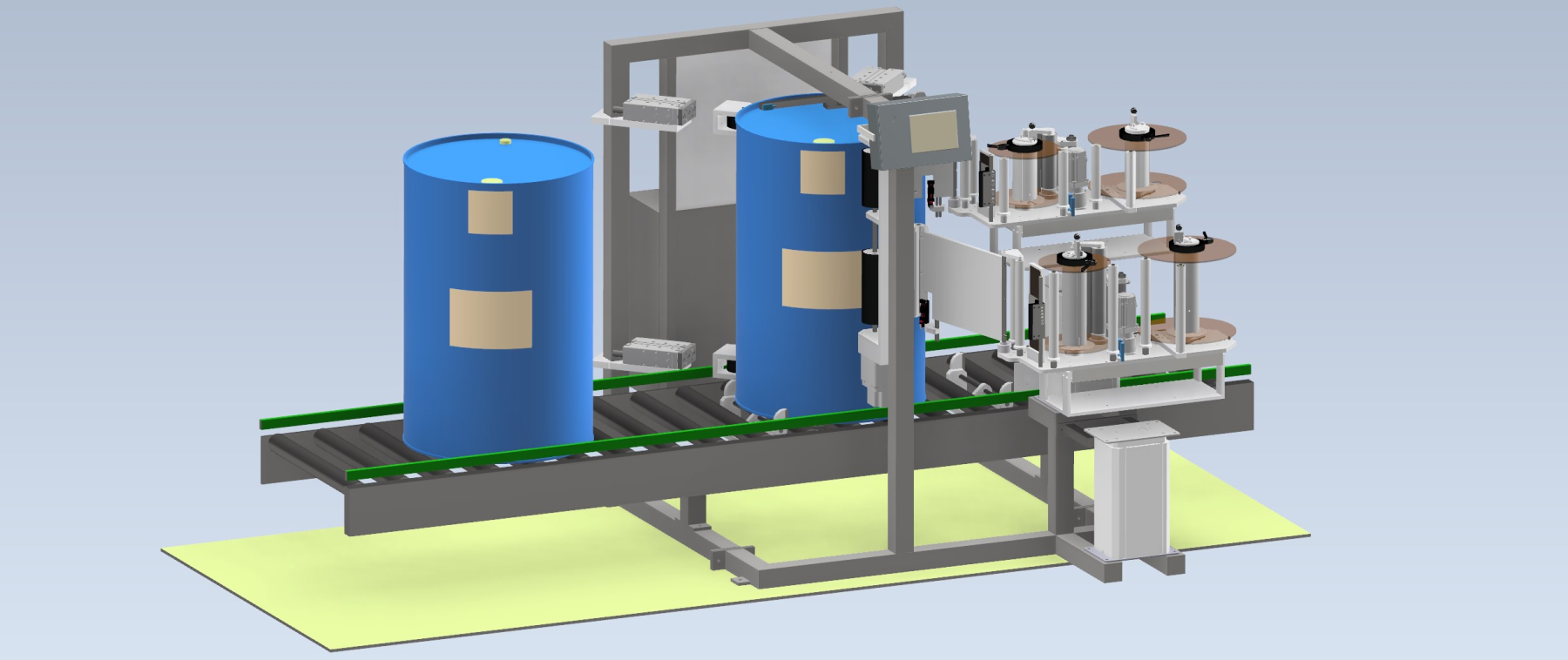 The customer needed to dispense 2 labels on each barrel, and it was essential that the labels were positioned in relation to the barrel's filler spout.